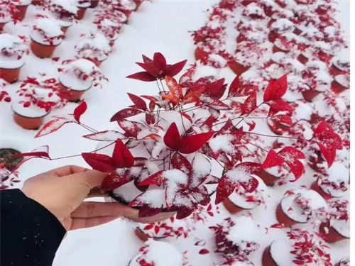 火焰南天竹常綠灌木、矮生匍匐、適應性廣、秋冬紅葉、紅葉持久、四季不落葉、管理簡單、以及工廠化生產(chǎn)方式,對這樣的產(chǎn)品,無論是工程應用還是庭園配置,市場前景非常寬廣,尤其在北方冬季,不但能彩花林下景觀,還能起到封塵固沙的生態(tài)作用。
