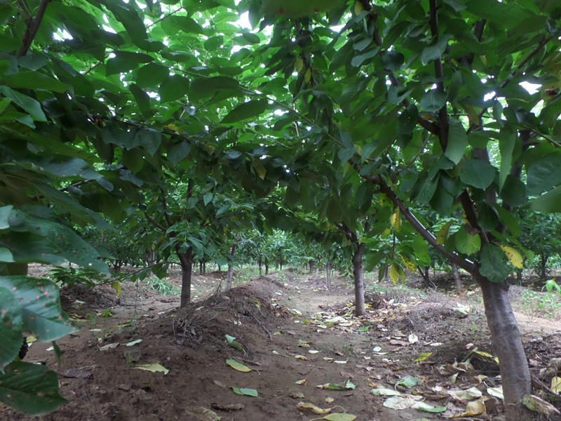 為了促使幼樹早結(jié)果,在整形的基礎(chǔ)上,對各類枝條的修剪程度要輕,以生長期的摘心為主.以控制枝梢旺長,增加分枝,加迅擴大樹冠.冬季修剪時間應(yīng)推遲到萌芽前,以避免剪口失水干枯.除對主枝、延長枝短截和適當(dāng)間疏一些過密、交叉枝外,其余中、小枝要盡量保留.