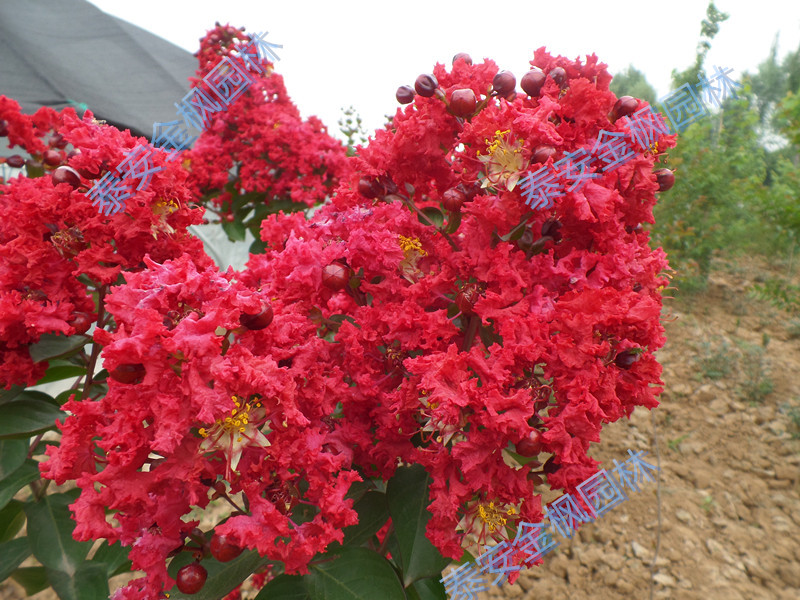 3.花紅、花簇大:花簇大可達(dá)24英寸,花量大且花瓣密集,花色艷麗?;ㄔ谇鐭崽鞛樾杉t色,是珍貴的大紅紫薇品種。7月開(kāi)花,持續(xù)3月.